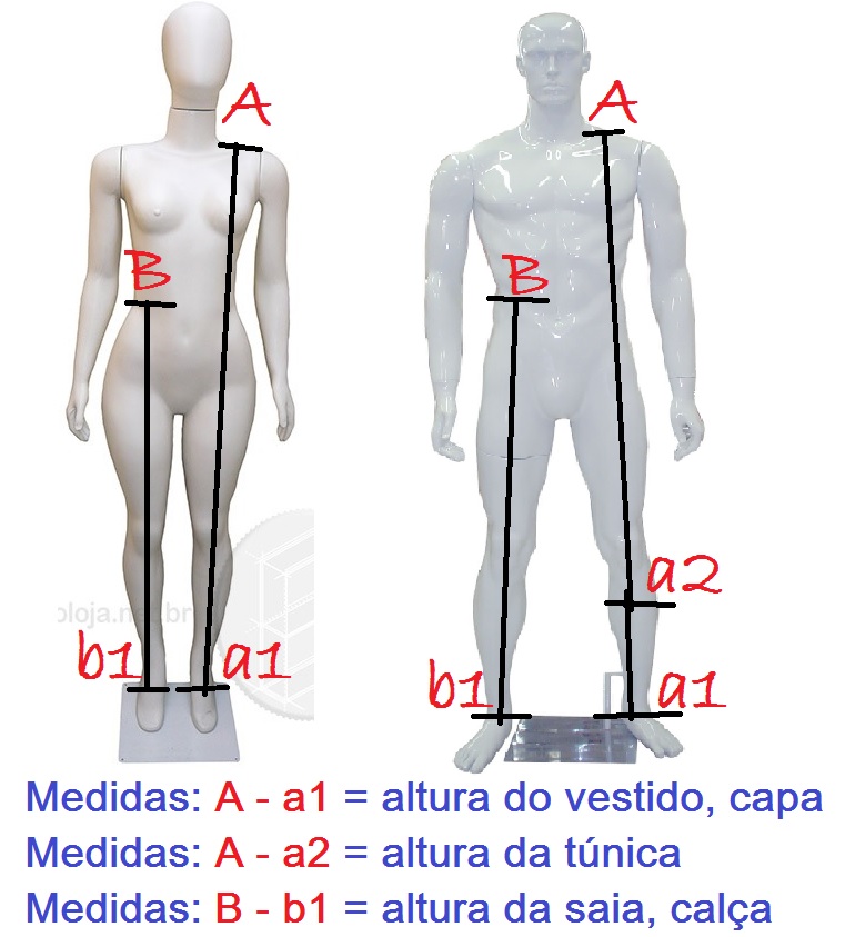 Confira em qual manequim, você melhor se encaixa. Lembrando que, mesmo que as medidas não batam exatamente com as medidas padrão, os modelos medievais tem passadores e cordões, que ajustam o traje perfeitamente.
